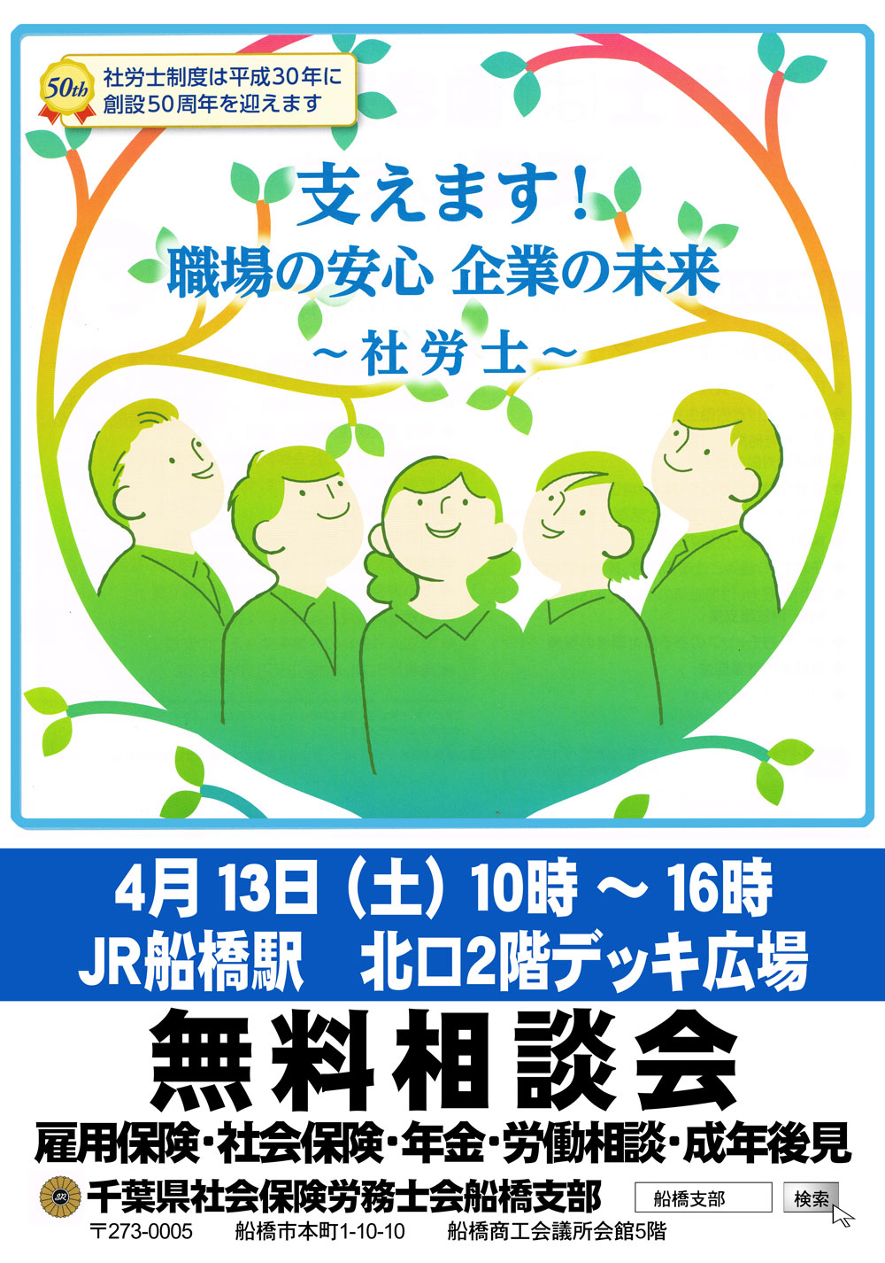 千葉県社会保険労務士会船橋支部が、無料相談会を開催します。